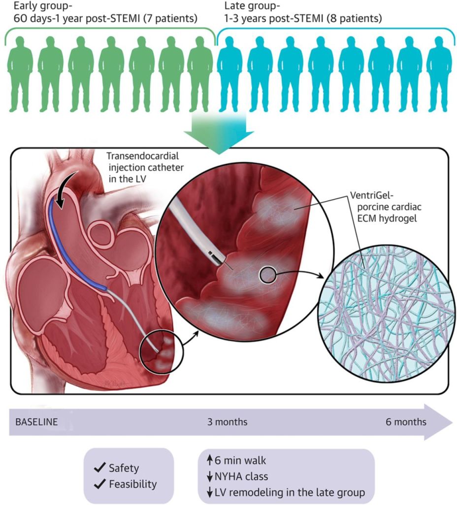 The Phase 1 trial evaluated the gel in 15 patients who sustained moderate damage in the left ventricle chamber of the heart following a heart attack. Each patient received up to 18 injections of VentriGel into the damaged region via catheter. Researchers followed the patients for six months after treatment. All patients completed the full follow-up.