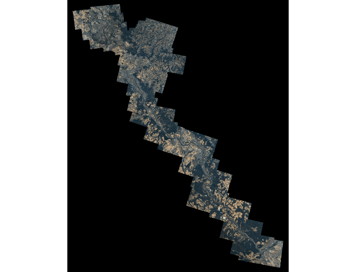 ESA astronaut Samantha Cristoforetti returned to the International Space Station for her second mission, Minerva, on 27 April 2022. In her free time, like many astronauts, she enjoys looking out of the Cupola windows at Earth. This collage of pictures shows the Rhine River from Cologne to Bingen am Rhine in Germany, made from multiple pictures mapped together, digitally rotated and assembled into this large collage. The pictures were taken on 13 August 2022.