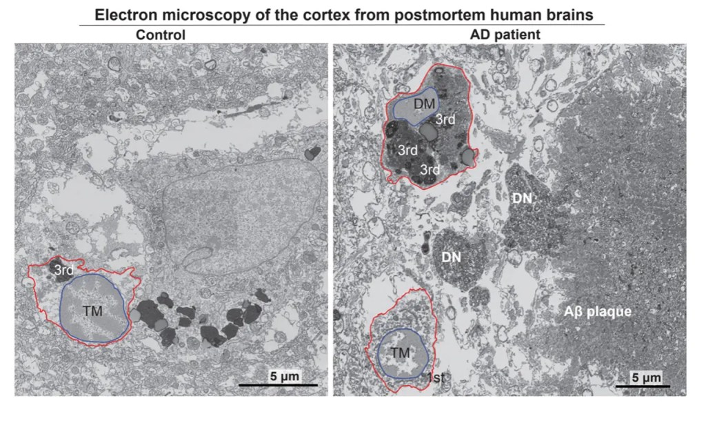 • Dark Microglia and Alzheimer’s Disease: Using electron microscopy, the researchers identified an accumulation of “dark microglia,” a subset of microglia associated with cellular stress and neurodegeneration, in postmortem brain tissues from Alzheimer’s patients. These cells were present at twice the levels seen in healthy-aged individuals.